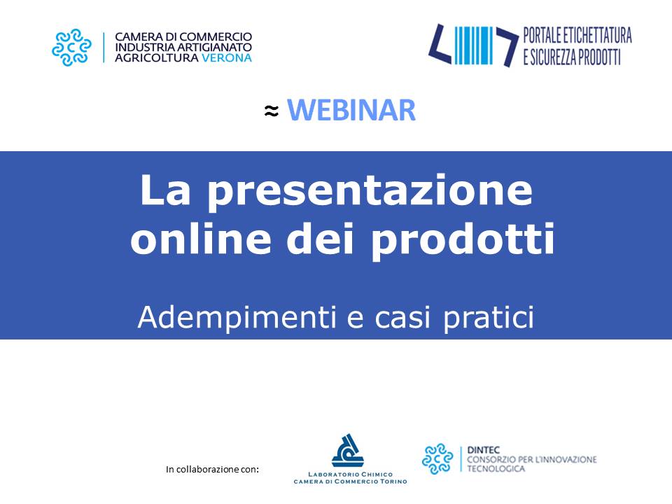 Lo Sportello Etichettatura e Sicurezza Prodotti della Camera di Commercio di Verona organizza il webinar "La presentazione online dei prodotti. Adempimenti e casi pratici", il 12 dicembre 2023, dalle 9.30 alle 12.30.