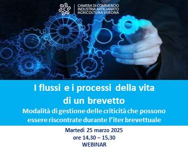Lo Sportello Tutela Proprietà Intellettuale della Camera di Commercio di Verona organizza un webinar per illustrare alle imprese alcune modalità di gestione delle criticità che possono essere riscontrate durante l’iter di registrazione di un brevetto.