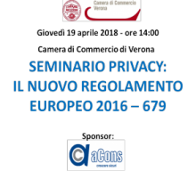 La Camera di Commercio di Verona, in collaborazione con Acons srl, organizza il convegno “Privacy: il nuovo regolamento europeo 2016-679”, allo scopo…