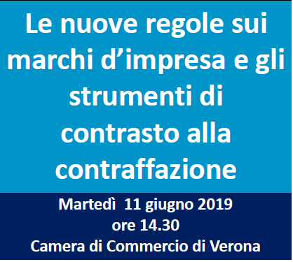 Lo Sportello Tutela Proprietà Intellettuale della Camera di Commercio di Verona organizza, martedì 11 giugno alle 14.30, un seminario per fornire, a professionisti e imprese, un aggiornamento sulle novità introdotte dal d.lgs. 15/2019, di attuazione della Direttiva UE n. 2015/2436, in materia di marchi d’impresa.