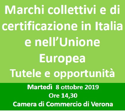 Lo Sportello Tutela Proprietà Intellettuale della Camera di Commercio di Verona organizza, martedì 8 ottobre alle 14.30, un seminario per fornire, a professionisti e imprese, un aggiornamento sulle novità introdotte dal d.lgs. 15/2019, di attuazione del Reg. UE n. 2017/1001, in materia di marchi collettivi e di registrazione.
