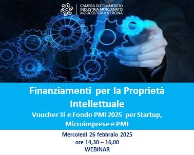 Lo Sportello Tutela Proprietà Intellettuale della Camera di Commercio di Verona organizza un webinar per illustrare alcuni strumenti di finanziamento alle imprese per la tutela della proprietà intellettuale.