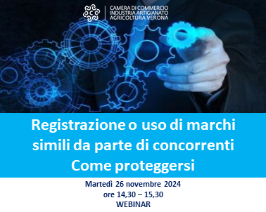 Lo Sportello Tutela Proprietà Intellettuale della Camera di Commercio di Verona organizza un webinar per spiegare come proteggersi dai rischi derivanti dall'inerzia nei confronti della registrazione o dell'uso di marchi uguali o simili da parte di concorrenti ed evitare la decadenza dei propri diritti.