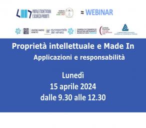 Webinar "Proprietà intellettuale e Made in - Applicazioni e responsabilità" 15 aprile 2024
